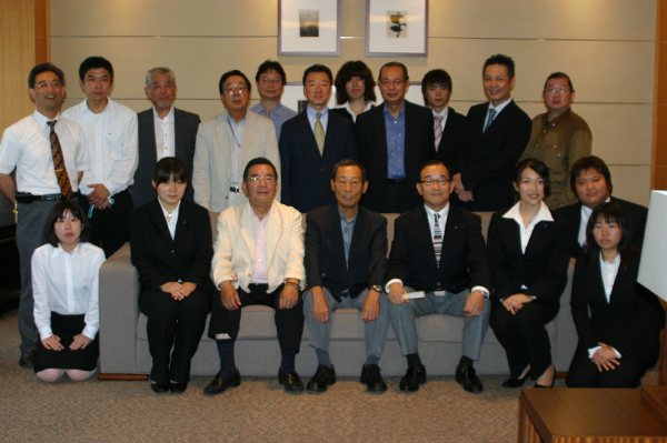 大きく書いた布を広げ祝福しました